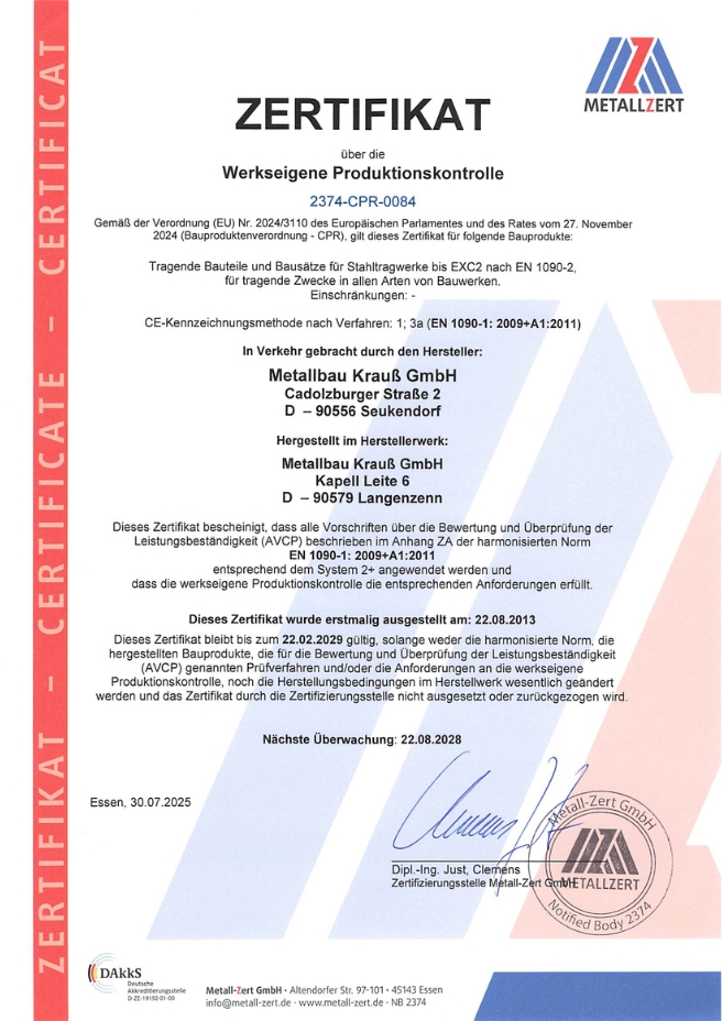 Unsere CE- Zertifizierung nach EN 1090 erfolgte in der execution class EN 1090-2